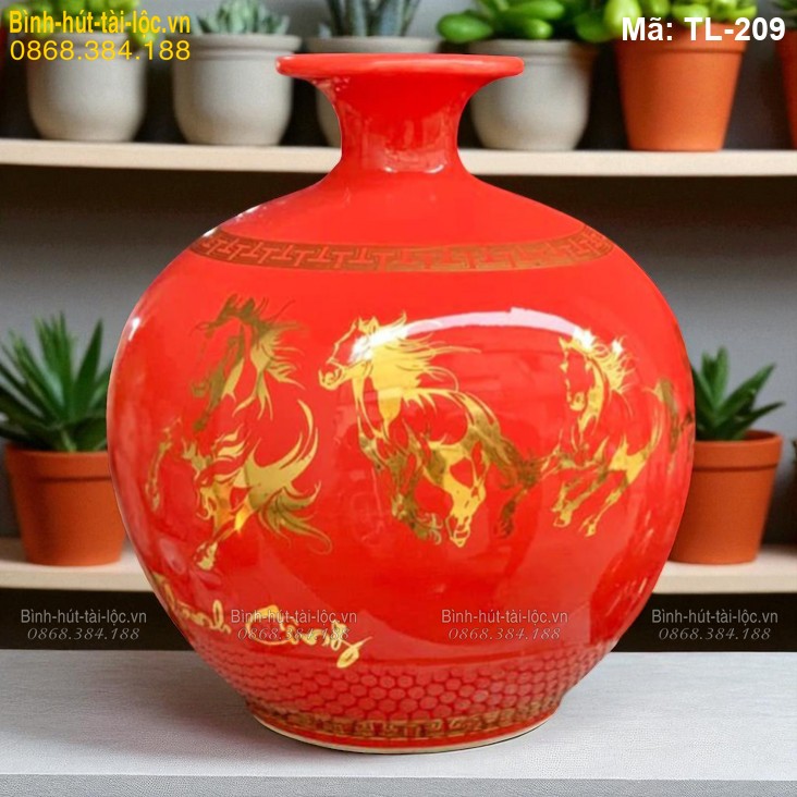 Quý khách quan tâm đến sản phẩm Bình hút tài lộc màu đỏ mạ vàng Mã Đáo Thành Công – nổi bật, may mắn mã TL-209 vui lòng liên hệ: