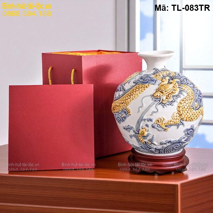 Khác với phiên bản màu đỏ thiên về sự mạnh mẽ, TL-083TR tập trung vào sự cân bằng và tinh khiết. Màu trắng tượng trưng cho sự khởi đầu mới, minh bạch và rõ ràng, giúp thu hút nguồn năng lượng tích cực vào không gian sống. Họa tiết rồng nổi vẫn giữ nguyên ý nghĩa về quyền lực và tài lộc, nhưng khi kết hợp với nền trắng lại mang đến cảm giác nhẹ nhàng, dễ tiếp cận hơn. Nếu bạn đang tìm kiếm một sản phẩm mang ý nghĩa hanh thông, thuận lợi trong công việc, có thể tham khảo thêm dòng bình hút tài lộc thuận buồm xuôi gió để bổ sung lựa chọn phù hợp với nhu cầu.