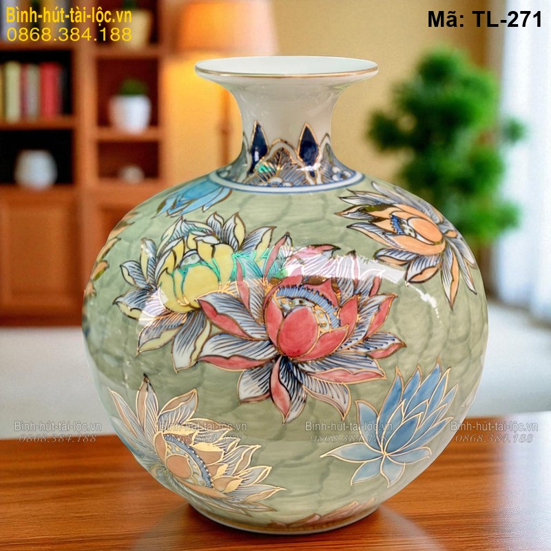 - Tên sản phẩm: Bình hút tài lộc vẽ sen mạ vàng 24K cao cấp – giá trị thẩm mỹ cao mã TL-271