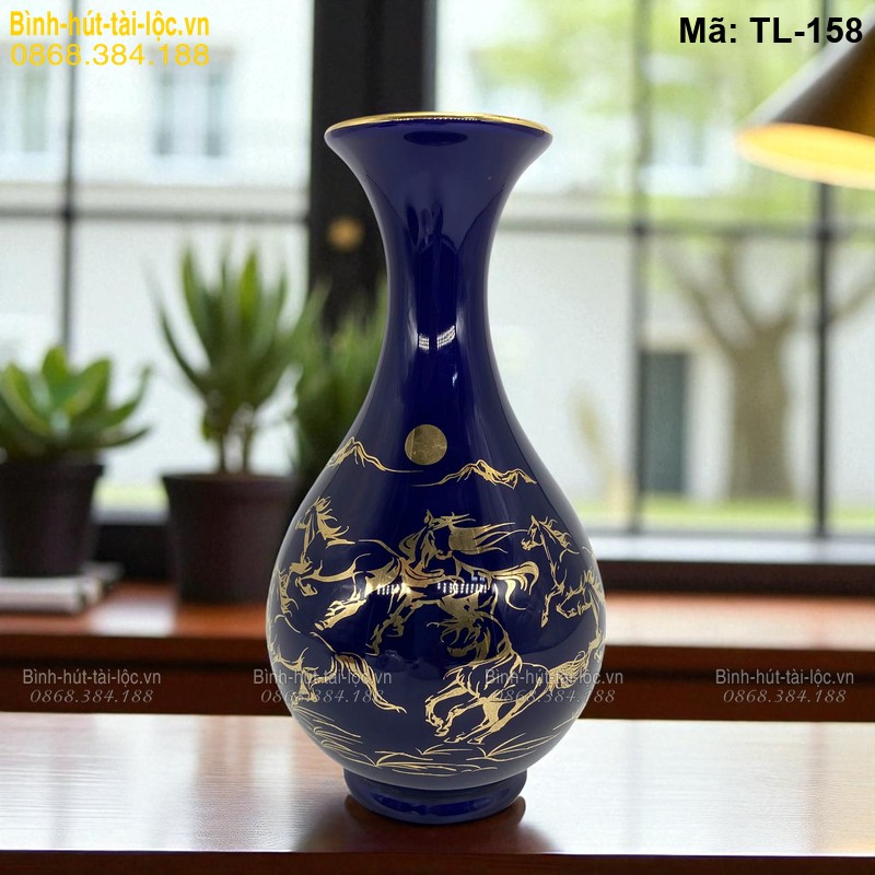 Quý khách quan tâm đến sản phẩm Bình tài lộc dáng Tỳ Bà xanh dương – trang trí hiện đại, tinh tế mã TL-158 vui lòng liên hệ: