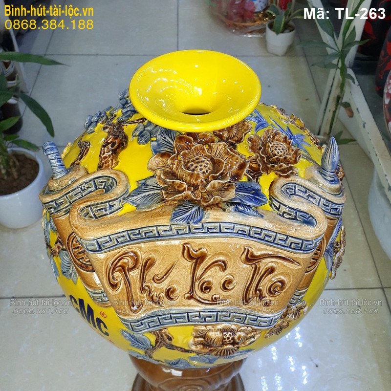 - Tên sản phẩm: Bình tài lộc đắp nổi Phúc Lộc Thọ cuốn thư – phong thủy truyền thống mã TL-263
