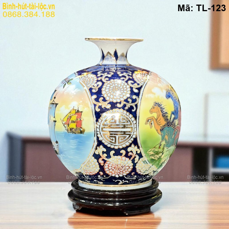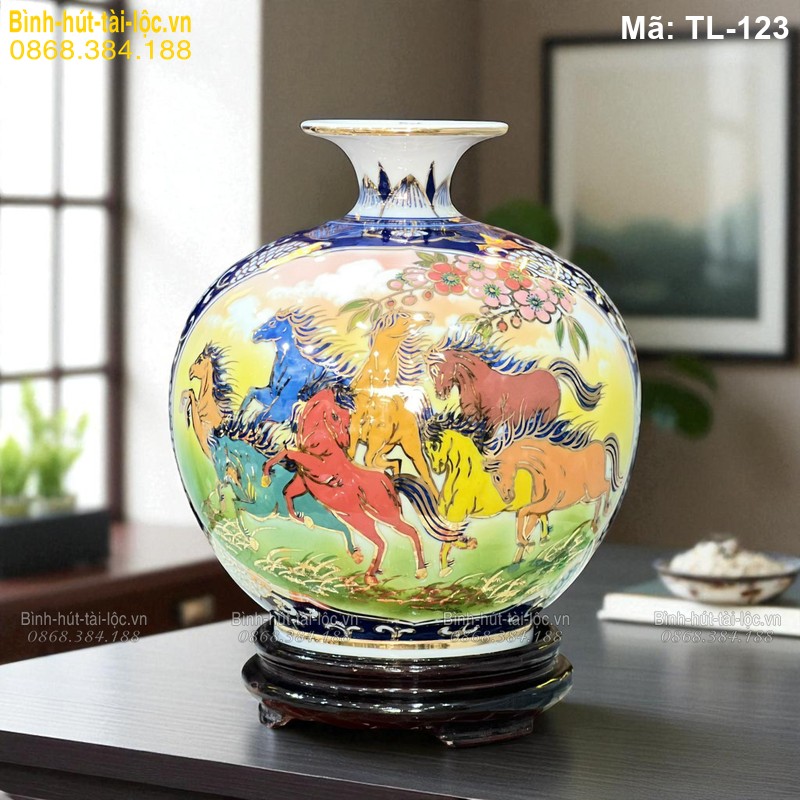 - Tên sản phẩm: Bình tài lộc vẽ tay cảnh Bát Mã mã TL-123